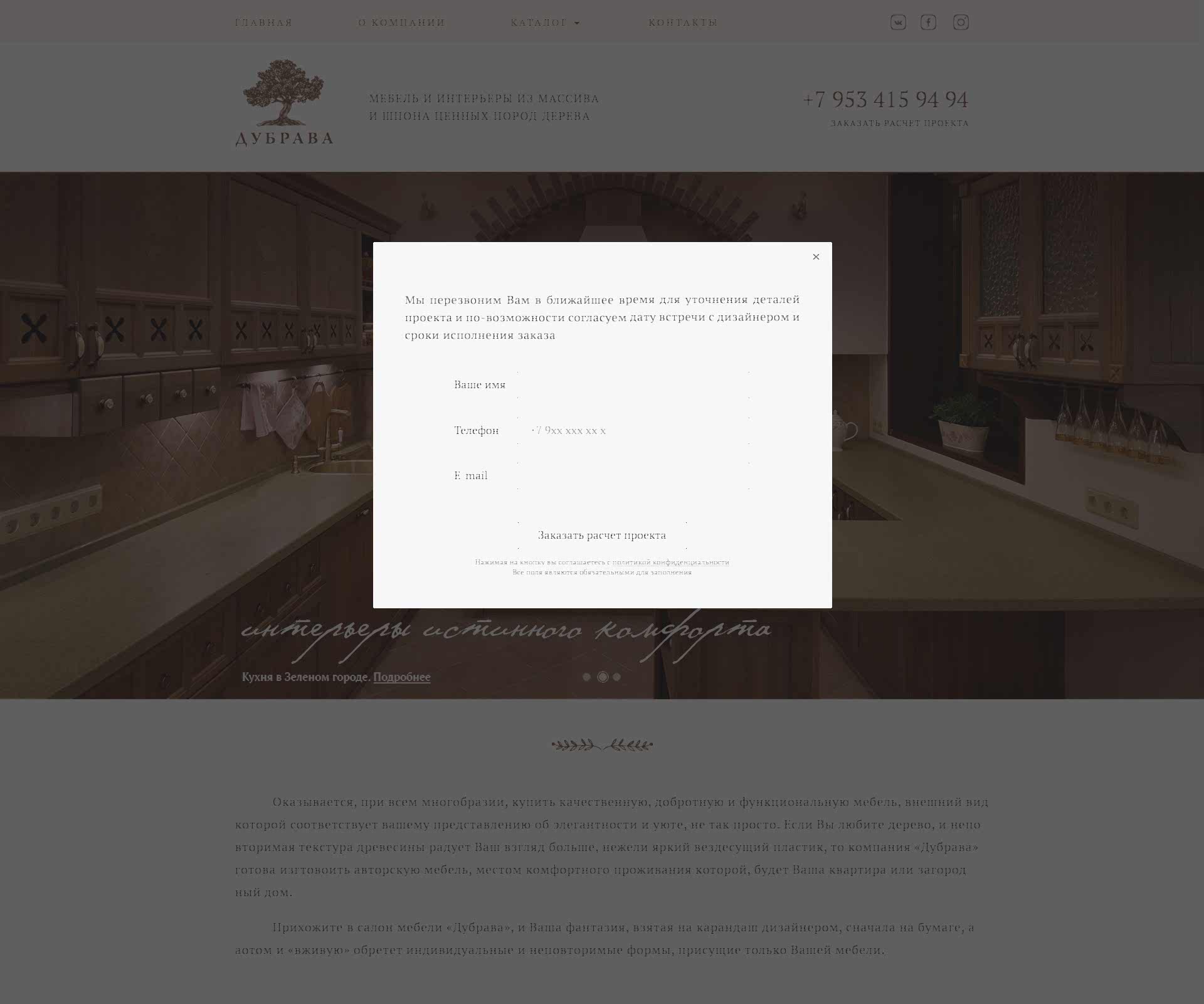Дизайн сайта для мебельного предприятия Дубрава (г. Нижний Новгород)
