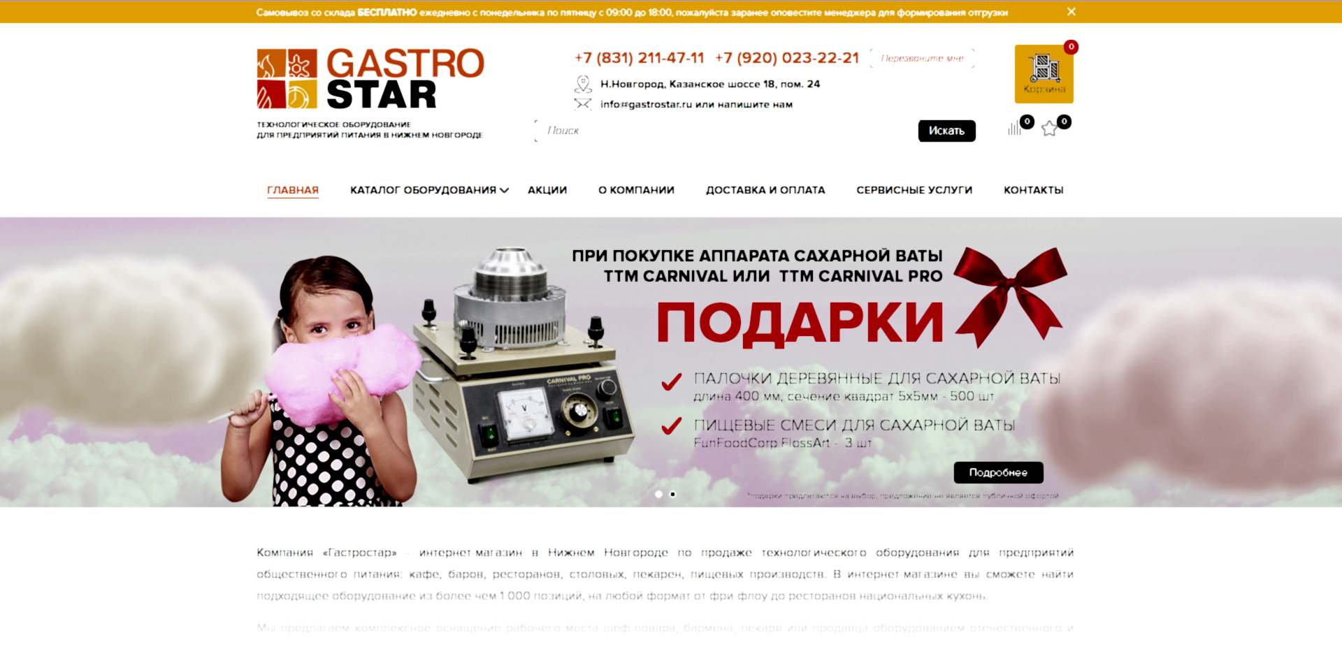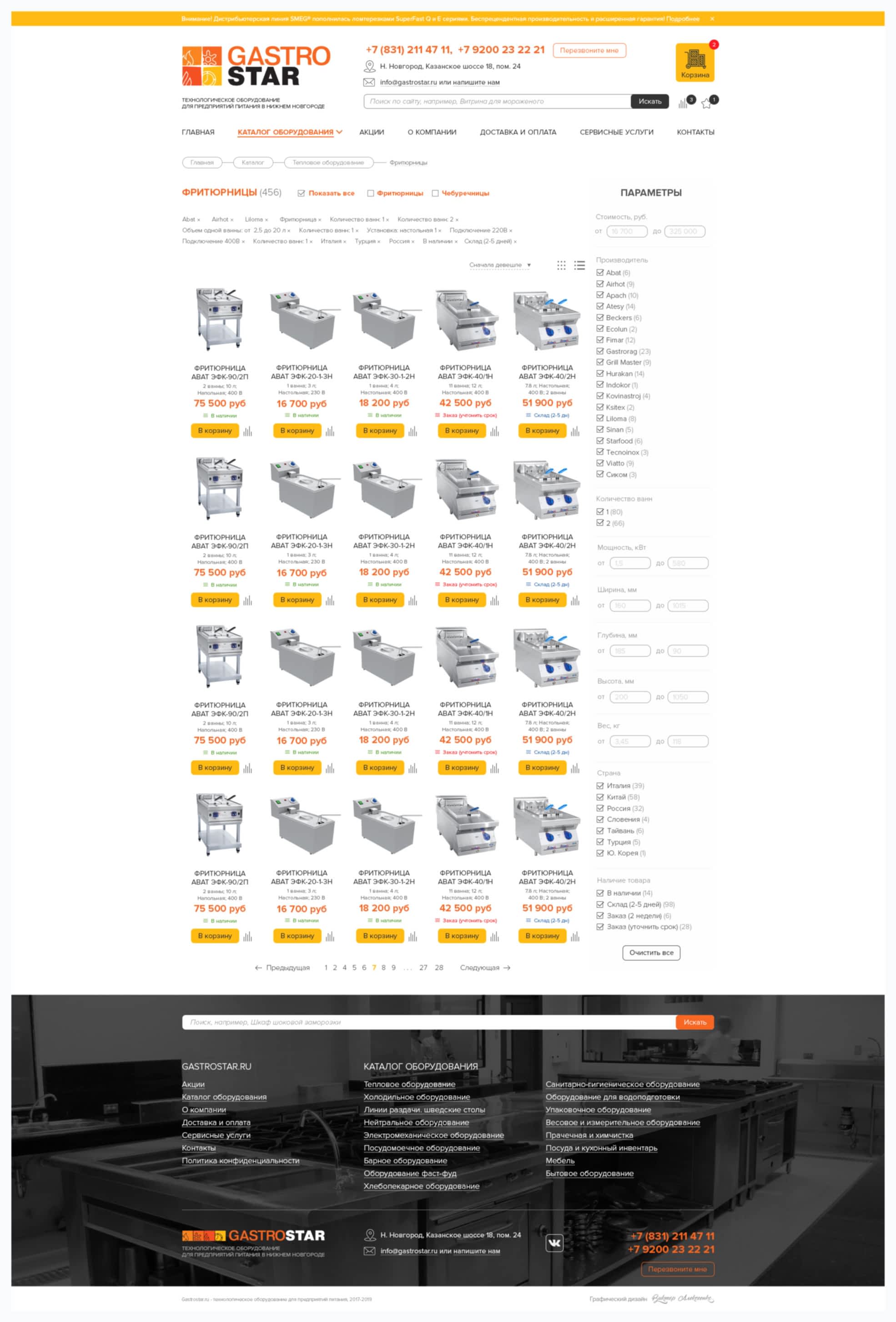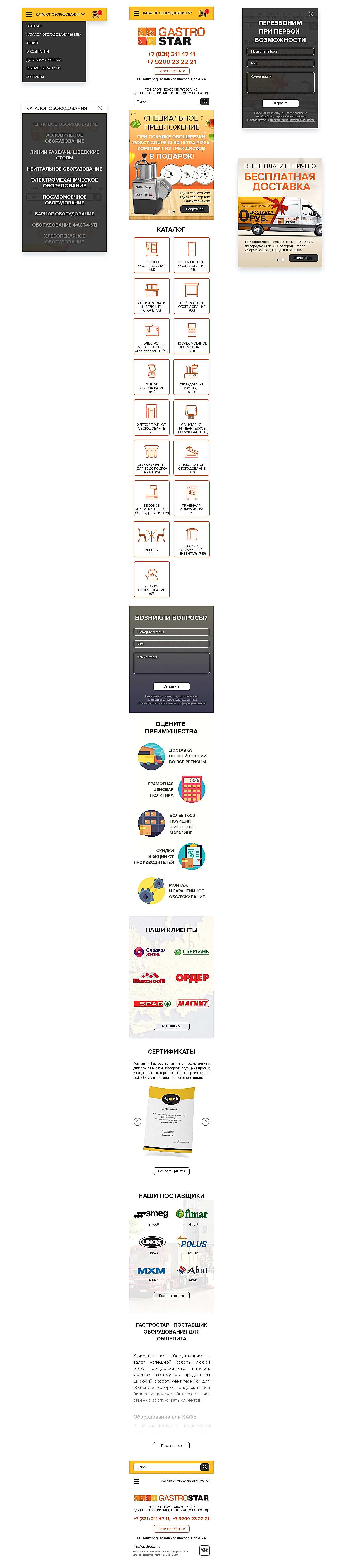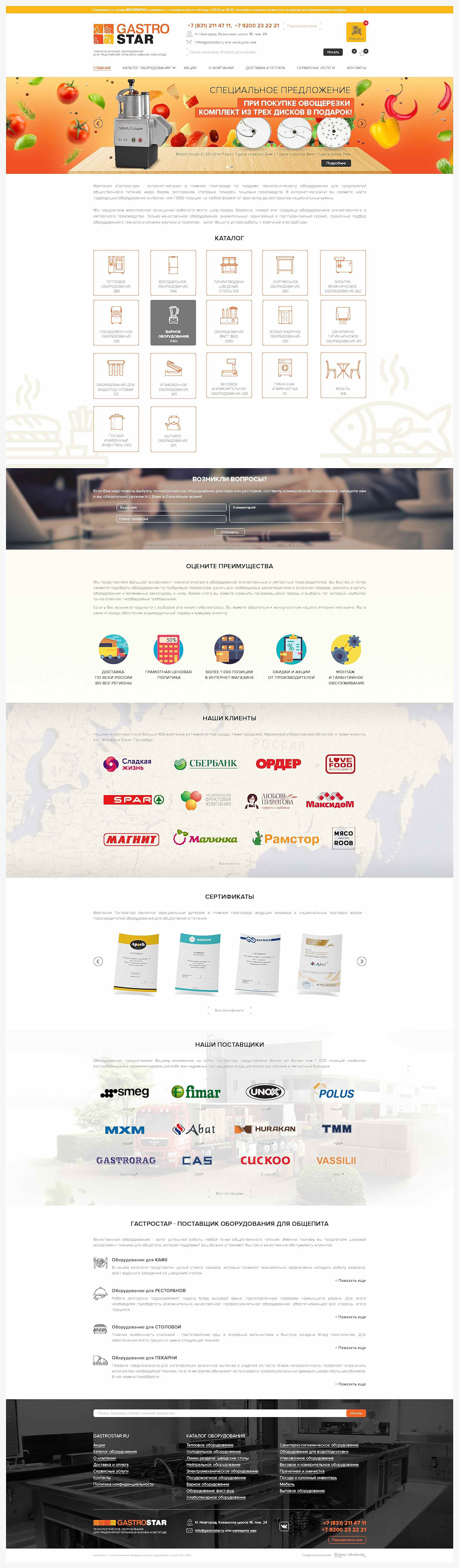 Редизайн сайта, баннеры для компании GastroStar (г. Нижний Новгород)