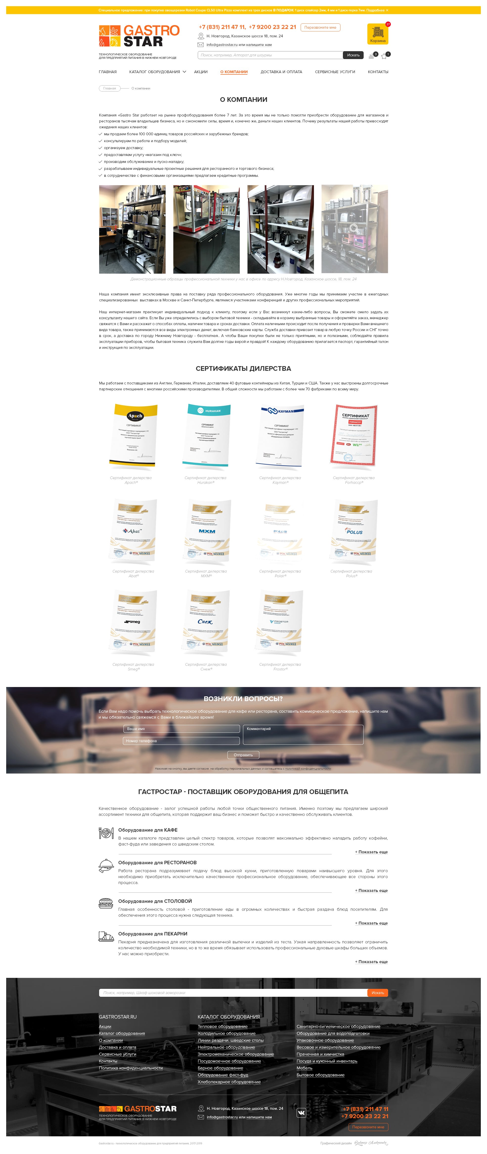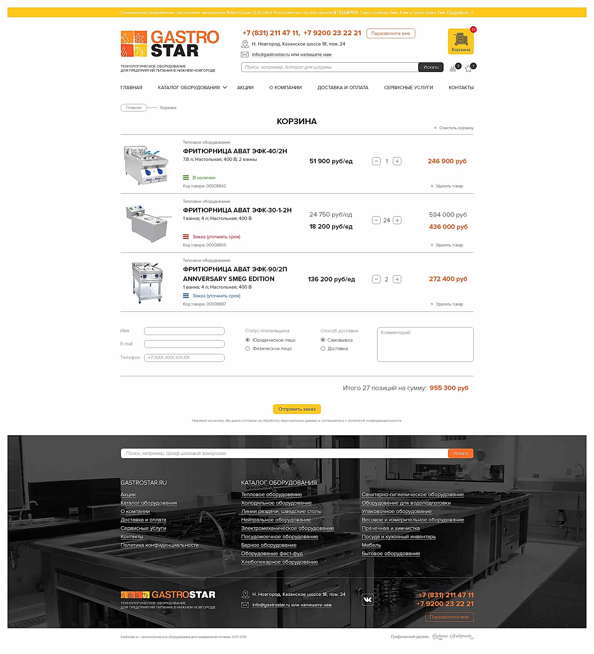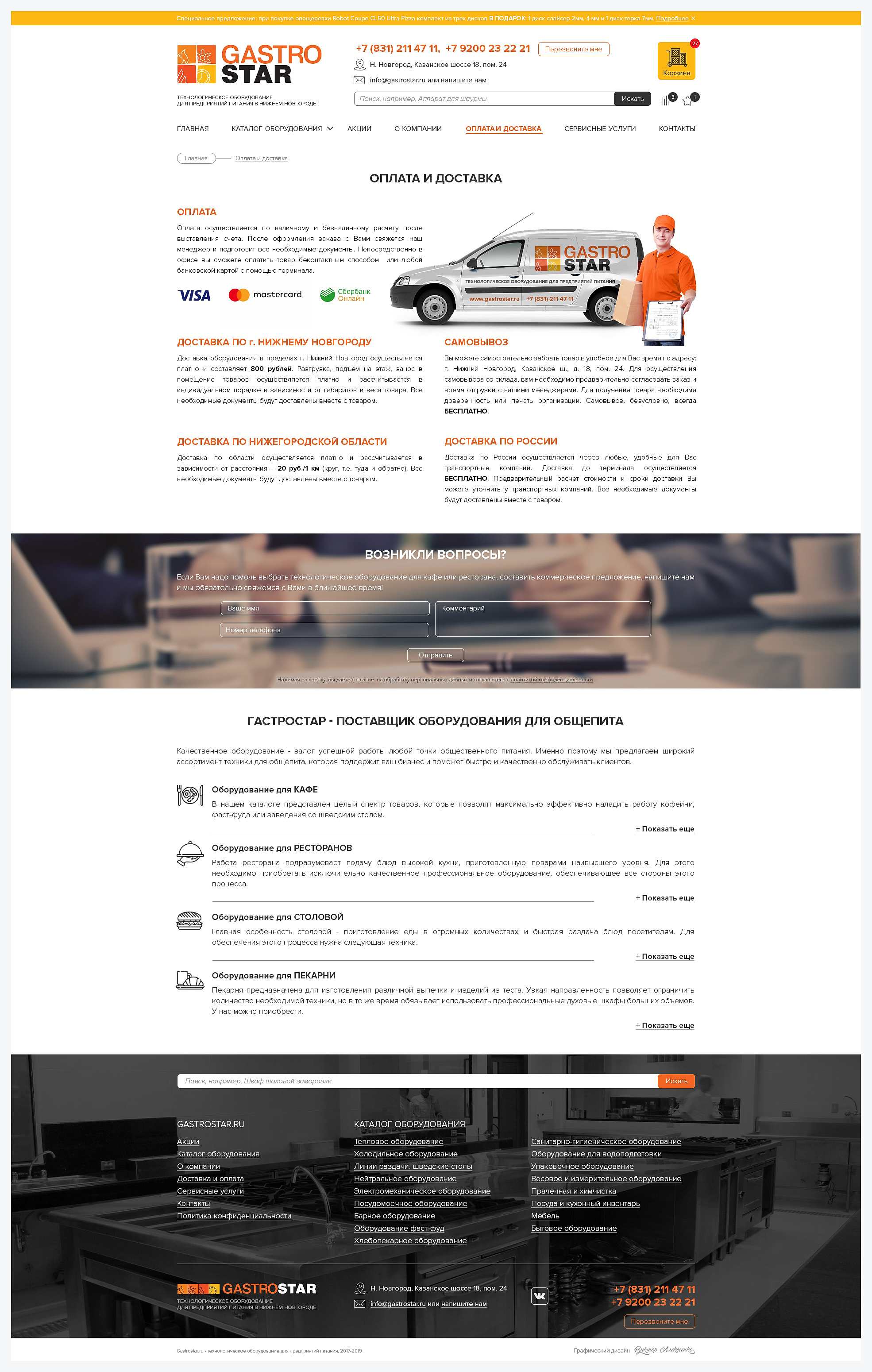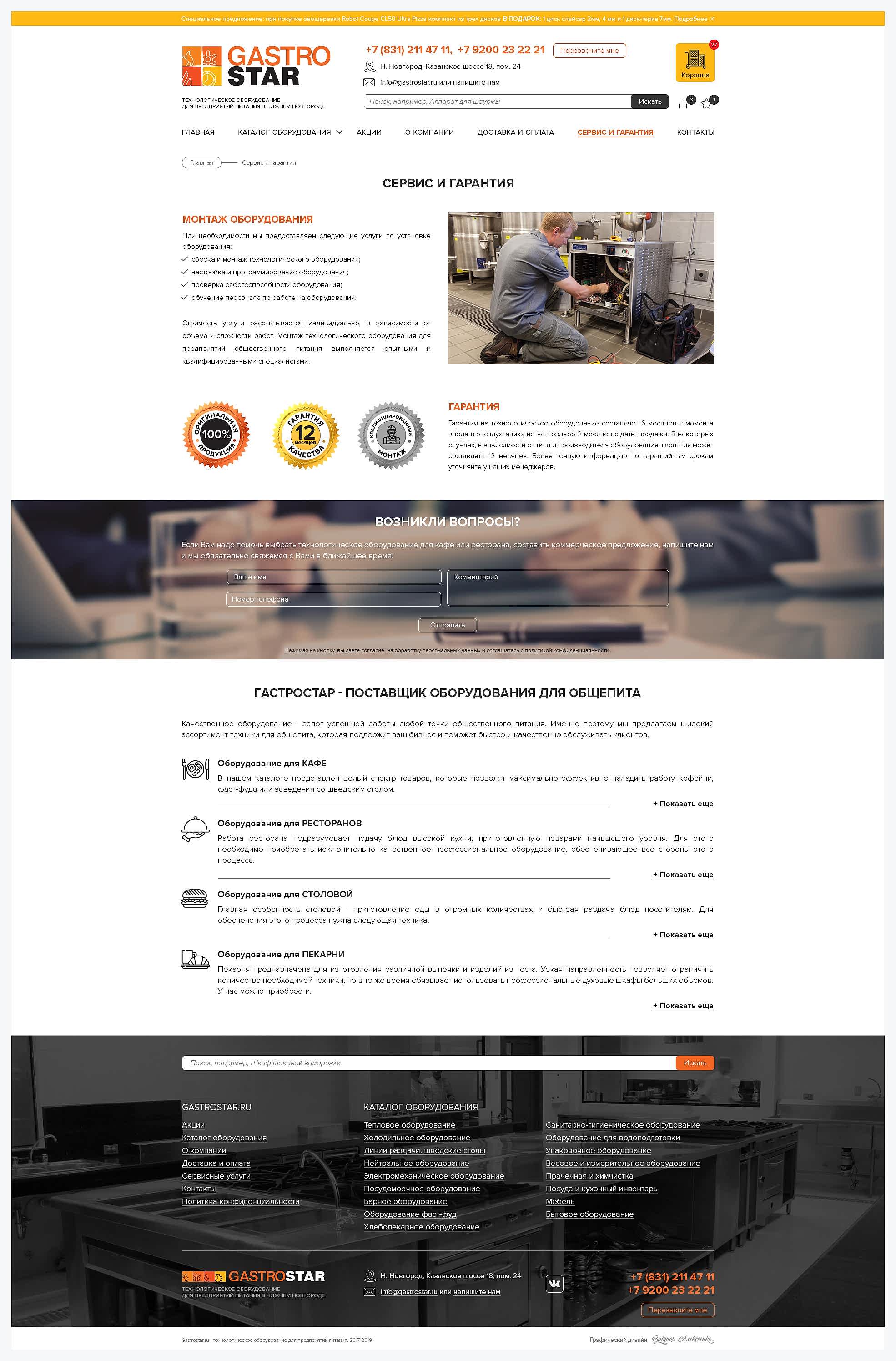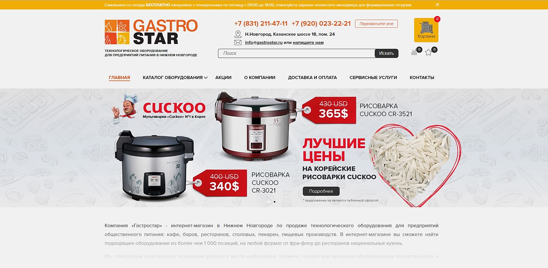Редизайн сайта, баннеры для компании GastroStar (г. Нижний Новгород)